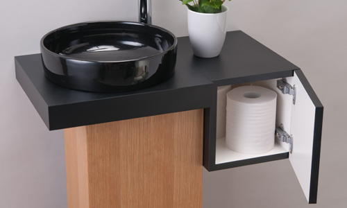 The hand wash unit, which includes a basin, a body, and a leg, is designed under the theme of the traditional that coexists in modern space (i.e. TIM). The basin, which is handmade as having been produced at a Kutani ware atelier, is placed on the body that has a box shape with an asymmetric, yet smart look for a simple, modern toilet space. The different textures effectively draw a simple and harmonious line. The basin is [...]